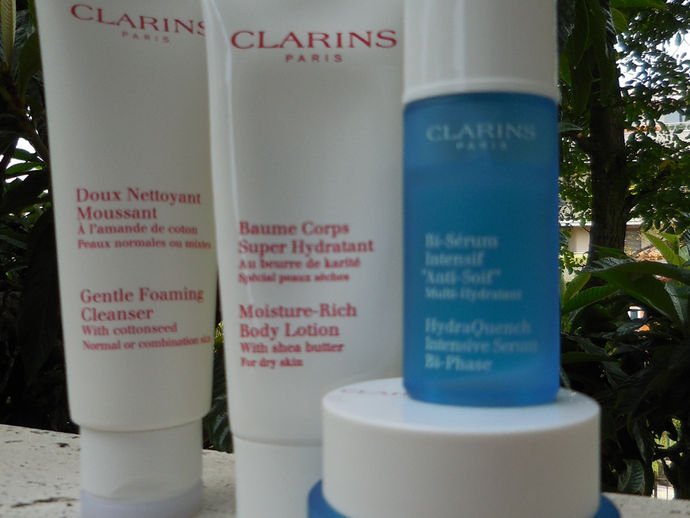 Ciao ragazze, Oggi vi parlerò di quattro prodotti Clarins, che uso quotidianamente da un po', tre sono per il viso (Clarins Doux...